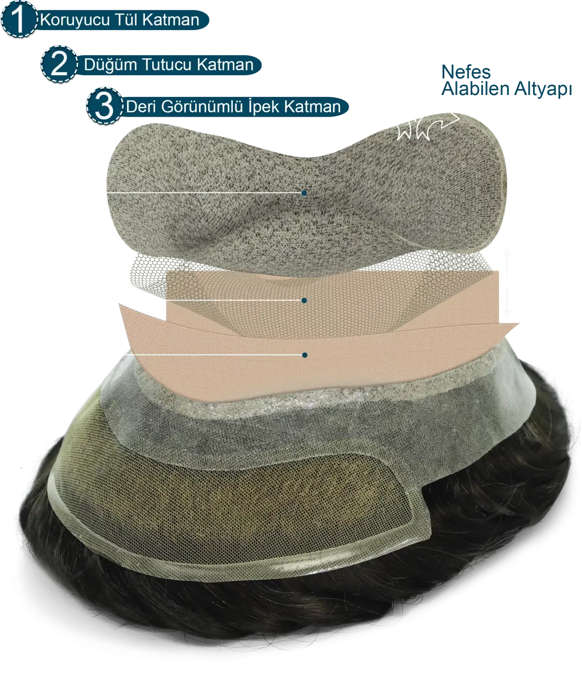 Laboratuvar ortamında protez saç altyapısı, nano teknolojiye sahip 3D silikon yazıcılar kullanılarak üretilir. Saç renginiz, gelişmiş pigment analiz makineleri ile tespit edilerek birebir uyumlu renk modeli oluşturulur. Ardından Hair Bleaching (saç ağartma) tekniği uygulanarak saç köklerinin cilt rengine yakın görünmesi sağlanır. Böylece saç kökleri, düğüm noktaları ve alın çizgisi kesinlikle fark edilmez.